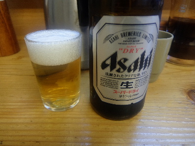 本日は新橋方面へウオーキング。遅いランチは小休止を兼ねて新橋駅前ビルの「とんかつまるや」にていただきましょう。カウンター席でお約束の昼ビールからスタートです。アサヒのスーパードライ、瓶ビールです。アルコールメニューは瓶ビールと日本酒、焼酎。焼酎は芋と麦がありますね。甲類ではありません。ランチメニューはロースカツ、ヒレカツ、海老カツのほかに、アジフライとセットのコンビ定食など豊富です。一品メニューから限定の厚切りロースカツ皿を見つけました。ご飯なしのこちらでお願いしましょう。ビールから12分ほどでマイターン。たっぷりのキャベツと一緒に到着です。さくっと揚がったトンカツ。ジューシーなお肉は厚切りならではですね。脂のぐあいもよく、ビールがさらに美味しくいただけます。ソースとの相性も抜群ですね。美味しくいただきました。さて、虎ノ門方面へウオーキングの続きです。どうもごちそうさまでした!「とんかつ まるや 新橋駅前本店」東京都港区新橋2-20-15 新橋駅前ビル1号館 1F[月~金]11:00~15:00(L.O.14:45)17:00~22:00(L.O.21:30)[土]11:00~15:00(L.O.14:45)日曜、祝日休みとんかつ まるや 新橋駅前本店 (とんかつ / 新橋駅、汐留駅、内幸町駅) 昼総合点★★★☆☆ 3.5