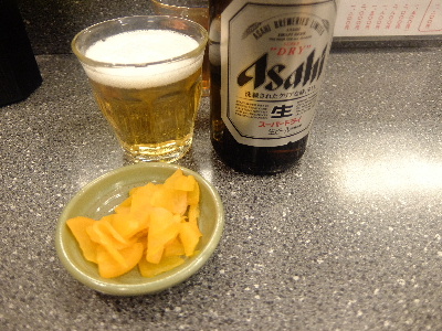 本日は定期通院の日。昨日は宴席でスポーツジムへ行けませんでしたので、アサイチでランニング30、その他マシン30してからの病院です。検査結果も良く、軽くウオーキングをしてからのランチと致しましょう。亀有「松むら」のカウンターへ。お約束の昼ビールいっちゃいましょう。サッポロのエビス、瓶ビールです。ランチメニューは松花堂弁当、天ぷら定食、ヒレカツ定食、海鮮丼など。お刺身付きの天丼をお願いしました。先客は個室に団体さんが入っておりますね。ソロの常連さんはカウンターで同じように待ち状態です。カウンターの中の人はお二人。順番にやってきます。ビールから7分後にお新香。これはキュウリ、大根、白菜の浅漬け。10分後にお刺身が到着です。マグロ、イカ、タコ、サーモン、しめ鯖、ホタテと種類がたくさんで嬉しいですね。そして15分後にメインの天丼が到着です。エビが3本に茄子、カボチャ、ししとうなど充実した天丼。さらに赤だし付きという豪華ラインナップ。美味しくいただきました。駅から離れておりますが、素晴らしいランチタイムでした。また運動頑張って、良い数値を出して来たいと思います。お世話になりました!「松むら」東京都葛飾区亀有1-14-6松むら (割烹・小料理 / 亀有駅、お花茶屋駅、青砥駅) 昼総合点★★★★☆ 4.0
