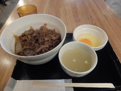本日のモーニングは築地場外魚河岸食堂の「鳥藤」さんへ。宮崎出張前に美味しい朝ごはんでパワーをいただきましょう。生ビールをいただきたいのですがぐっと我慢。親子丼、とりそばと迷いましたが、今日は牛丼をお願いしましょう。お水をいただきお薬タイムをしながら待ちます。5分ほどで牛丼が出来上がりました。和牛一頭買いの築地有名店である近江屋牛肉店の和牛。贅沢な牛丼をいただいちゃいましょう。タマネギも入っておりますが、メインが肉肉ですね。柔らかく上質なお肉に甘辛の味付け。たまりませんね。ご飯がすすみます。1000円の贅沢牛丼ですが、このお肉でしたらありですね。途中で鳥藤の生玉子を追加。こちらも100円の玉子という贅沢です。安定の鶏スープも美味しくいただきました。さて、美味しい朝食をいただいたあとは羽田空港へ向かいます。どうもごちそうさまでした!「鳥めし鳥藤 魚河岸食堂店」東京都中央区築地6-26-1魚河岸食堂7:00~14:00日・祝休鳥めし 鳥藤 魚河岸食堂店 (鳥料理 / 築地駅、築地市場駅、東銀座駅) 昼総合点★★★☆☆ 3.5