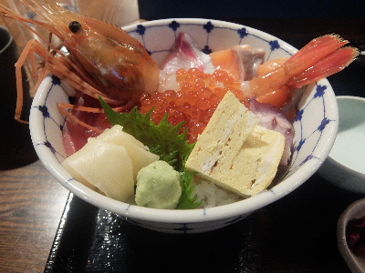 本日の早朝ウオーキングは東銀座で途中下車して築地方面へ。築地場外にあるビル、小田原橋棟の「築地魚河岸 海鮮」でモーニング小休止と致しましょう。7時の開店と同時に来まして、先客はなし。隣の小田保さんはまだ人が来ていません。。。朝の献立は、鉄火丼や三色丼などの丼モノ、焼き魚や天ぷらの定食。天ぷらと迷いましたが、特選海鮮丼と致しましょう。お水をいただきお薬タイム。特選海鮮丼もすぐにやってきました。築地のスピード感は良いですね。海鮮丼、お味噌汁、お新香の3点セットです。大きな海老とマグロ、カンパチ、タコ、サーモン、いくら、玉子焼き。玉子焼きは海鮮なのかな?フードコートらしいカジュアルな海鮮丼。酢メシではなくご飯でいただきました。場外に多い写真は豪華でも、実際はご飯の地肌が見えてしまうというパネルマジックはなかったです。期待値どおりに普通に美味しくいただきました。どうもごちそうさまでした!「築地魚河岸 海鮮」東京都中央区築地6-26-1 築地魚河岸 小田原橋棟 3F7:00~14:00(LO13:30)17:00~22:00(F-LO21:00/D-LO21:30)日曜・祝日・休市日休み築地魚河岸 海鮮 (魚介・海鮮料理 / 築地駅、築地市場駅、東銀座駅) 昼総合点★★★☆☆ 3.0