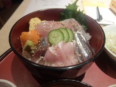本日は長崎出張。火曜日ですので築地モーニングをしてから羽田空港も出来たのですが、疲労がたまっております。長崎についてからのモーニング兼ランチです。駅前の「ボンボヤージ」でいただきましょう。ランチメニューはAランチからEランチまでありますね。Aが唐揚げとすり身揚げ、Bが牛肉の鉄板いため、Cがトンカツの玉子とじ、Dがチキン南蛮、そしてEが若鶏の出し揚げ。他にチャポリタン、特選海鮮丼、トルコライス。長崎名物であるチャポリタンと迷いましたが、特選海鮮丼をお願いしましょう。お薬を飲みながら5分ほど待ってのマイターン。特選海鮮丼の到着です。海鮮丼のほかにサラダ、煮物小鉢、お新香、お味噌汁がセットになっております。お魚が新鮮で美味しいですね。キビナゴとアジのレベルが高く、さすが長崎ですね。美味しくいただきました。さて、新しく出来た県庁へ行ってみましょう。どうもごちそうさまでした!「ボンボヤージ」長崎県長崎市大黒町8-1[月~土] 11:30~14:30 17:00~24:00 [日] 17:00~24:00ボンボヤージ (洋食 / 長崎駅前駅、長崎駅、八千代町駅) 昼総合点★★★☆☆ 3.5