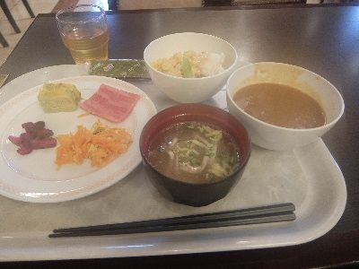 本日のモーニングは「ジーアールジーホテル那覇」にていただきます。バイキング形式の朝食です。人参しりしり、ベーコン、ソーセージ、玉子焼きを盛り付けます。カレーと沖縄そばめん少し、そしてご飯と海苔をいただきましょう。さんぴんちゃで朝のお薬をいただいてからの朝食タイムスタートです。バイキングの種類は少ないですが、沖縄を味わえるおかずがあって嬉しいですね。普通に美味しくいただきました。ホテルは繁華街の松山。残念ながらお休み中ですが、大好きなバー「和香」さんもすぐ近くです。昨日は「元バー坂梨松山」で嬉しい再会もありました。また利用したいホテルとなりました。どうもお世話になりました。仕事に出発です!「ジーアールジーホテル那覇 (GRG)」沖縄県那覇市松山2-16-10ジーアールジーホテル那覇 (その他 / 美栄橋駅、県庁前駅、旭橋駅) 昼総合点★★★☆☆ 3.0