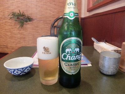 本日はカクテルコンペが東陽町でありまして、スーツをきてまいります。途中錦糸町でランチ小休止をとりましょう。「タイランド」のテーブル席へ。ビールで喉を潤しましょう。チャーンビールをお願いします。アルコールメニューが充実しておりますね。ビールはアサヒスーパドライのほかシンハービール、レオビールなど。レモンサワーグレープフルーツサワーなど各種サワー。ウイスキーはスーパーニッカ、ハーパーのほかメコン。焼酎やワインもあります。先客はグループ、カップルが多いですね。わずかながらもソロの同志がいると嬉しくなります。ビールのお供に選んだのはグリーンカレー。立石の深夜食堂でもグリーンカレーで呑んでいましたからね。充分につまみとなるのです、お野菜がごろごろ入っており、ボリュームあるグリーンカレー。辛さはほどほど、旨みがたっぷりですね。ビールがすすむくんです。最後までおいしくいただきました。さて、東陽町行のバスへ向かいましょう。どうもごちそうさまでした!「タイランド」東京都墨田区錦糸3-12-10[月~金]11:30~14:30(L.O.14:00)17:00~23:00(L.O.22:20)[土・日・祝]11:30~22:00(L.O.21:50)タイランド (タイ料理 / 錦糸町駅) 昼総合点★★★☆☆ 3.5