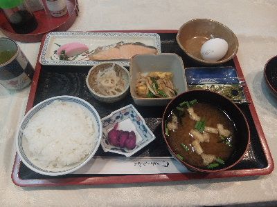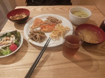 本日のモーニングは広島「セジュールイン流川」にていただきます。バイキング形式の朝食です。レタス、トマト、胡麻ドレッシングでサラダを組み立てます。メインはキンピラ牛蒡、ひじき、焼き魚、肉団子、ソーセージ。別皿で目玉焼き、海苔、お漬物。そしてご飯とお味噌汁。ウーロン茶を添えてです。いつものようにお薬タイムのあと、のんびりと時間をかけていただきました。休日のモーニングの贅沢でよね。台風が心配ですが、本日はバーテンダーさんの大会へ。午後からですのでのんびりとしましょう。どうもごちそうさまでした!「セジュールイン流川」広島県広島市中区流川町5-26セジュールイン流川 (旅館 / 胡町駅、八丁堀駅、銀山町駅) 昼総合点★★★☆☆ 3.0