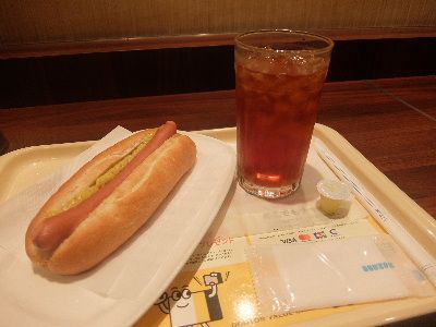 本日のウオーキングは金町スタート。川を越えて千葉県小金原、常盤平、五香方面へ。そして夕方に金町に戻ってまいりました。駅前の「ドトールコーヒー」で小休止です。アイスティー、ジャーマンでお願いします。ソロサラリーマンがお仕事したり、学生がおしゃべりしたりと多様な構成。おちつきますね。学生時代の思い出の場所である「ドトールコーヒー」。のりちゃん、元気かな?大好きなジャーマンドック。これをビールでやれたら最高ですが、残念ながら羽田空港店以外は未導入です。ビール待ってます!どうもごちそうさまでした!「ドトールコーヒーショップ 金町北口店 (DOUTOR) 」東京都葛飾区東金町1-24-7[月~金] 7:30~21:00 [土] 8:00~21:00 [日・祝] 8:00~21:00ドトールコーヒーショップ 金町北口店 (コーヒー専門店 / 金町駅、京成金町駅) 昼総合点★★★☆☆ 3.0