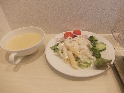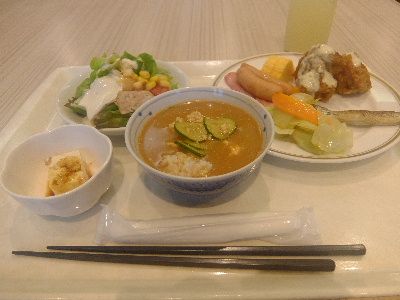 本日のモーニングは長崎「ホテルコンチェルト」にていただきます。和食と洋食のセットメニュー、サラダは自分でというハーフバイキング方式です。まずはお水をいただき、お薬タイム。ベジタブルファーストでサラダからいただきましょう。レタス、たまねぎ、きゅうり、トマトを盛り付けます。チーズとペンネもいただいてしまいましょう。和食ですが大好きなのでコーンスープもいただきます。和食のメインは焼き魚、玉子焼きを添えて。きんぴらごぼうとか明太子も良い仕事をしております。あくまでご飯が主役のモーニングです。今回は浜口町の居酒屋一人旅ということで、いつもの思案橋や長崎駅前と違ったロケーションのホテルでした。スポーツジムとそこそこ近いので良かったです。またお世話になりたいと思います。「ホテルコンチェルト長崎」長崎県長崎市平野町10-16ホテルコンチェルト長崎 (旅館 / 浜口町駅、大学病院前駅、松山町駅) 昼総合点★★★☆☆ 3.0