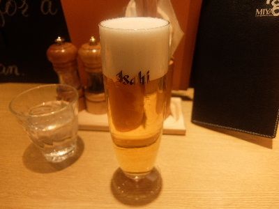 本日より五島列島へ出張です。3連休も土曜日は長崎からの移動、月曜日は五島への移動等ことで、完全休みは日曜日のみ。疲れがとれませんね。パワーをつけようと羽田空港でのランチは「カフェ&ビヤレストラン宮」でいただきましょう。飛行機はANAですが、あえての第一旅客ターミナルビルへ。カウンターで生ビールをいただいちゃいましょう。移動だけですからね。アサヒのスーパードライです。豊富なアルコールメニュー。ビールはTOKYO隅田川ブルーイングなどのクラフトビールもありますね。焼酎、ワインにハイボール、ウイスキー、サワー、カクテル。メインはステーキ、ハンバーグ、ポークソテーなど。ソースは以下の3種から選べます。・宮のたれ ・ペッパーソース・デミグラスソースハンバーグに宮のたれでお願いしました。ビールから6分ほどでマイターンです。熱々の鉄板の上にタマネギ。その上にハンバーグが鎮座しております。さらにコーンとポテトが付け合せ。宮のたれをじゅわっとかけていただきましょう。タマネギ、ニンニク、醤油ベースの宮のたれ。たれの美味しさがハンバーグを昇華させますね。これはビールがすすむくんです。搭乗前にニンニクいってしまいましたが、綺麗にしてマスクをしておきましょう。さて、搭乗時刻がくるまえに隣のビルへ移動です。どうもごちそうさまでした!「カフェ&ビヤレストラン宮 羽田空港店」東京都大田区羽田空港3-3-2 第一旅客ターミナルビル 2Fモーニング 6:30~11:00ランチ 11:00~17:00ディナー 17:00~21:30(L.O.21:00)カフェ&ビヤレストラン宮 羽田空港店 (洋食 / 羽田空港第1ビル駅、羽田空港国内線ターミナル駅、羽田空港第2ビル駅) 昼総合点★★★☆☆ 3.0