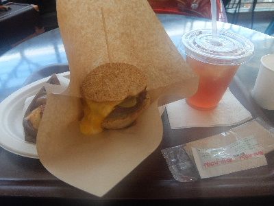 本日は対馬への出張。早朝の会議など本社での仕事を終えてからの移動開始です。羽田空港でかなり遅めのランチタイム。「自由が丘バーガー」でハンバーガーと致しましょう。オーダーのあとは呼び出しマシンを持って待ちます。フードコートのような席が並んでおりまして自由席です。席を確保して少ししたところでマイターン。呼び出しマシンが鳴りました。チーズバーガーとアイスティーのセットが出来上がりました。アルコールメニューは一番搾り、よなよな、コロナと3種のビール。他にワインがありますね。でも残念ながらこのあと機内でもお仕事。アイスティーをいただくことにしました。お肉の味がぎゅっと詰まったパティ。とろける濃厚なチーズ。そして甘みたっぷりのタマネギ。シンプルですが美味しいハンバーガーです。熱々のフライドポテトも良い脇役となっております。これでビールが飲めたらなぁ。。。さて、まずは福岡空港へ向かいましょう。どうもごちそうさまでした!「自由が丘バーガー羽田店」東京都大田区羽田空港3-4-2羽田空港第2旅客ターミナルル3Fターミナルロビー8:00~20:00自由が丘バーガー 羽田店 (ハンバーガー / 羽田空港第2ビル駅、羽田空港国内線ターミナル駅、羽田空港第1ビル駅) 昼総合点★★★☆☆ 3.0