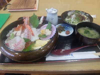 本日のお仕事は天草方面へ。激しい雨の中を歩いてたどりつた道の駅上天草さんぱーる。併設のレストランでランチとしましょう。限定のさんぱーる丼をお願いします。オーダー後少しだけ仕事をしようと思っておりましたら、3分ほどでマイターン。さんぱーる丼が到着です。海鮮丼、サラダ、お味噌汁というセット。まずはベジタブルファーストでお野菜から。普通に美味しい海鮮サラダです。海鮮丼のお刺身はたっぷりですね。鮮度の良さを感じさせるものもありますし、保存の悪さを感じさせるものもありました。玉石混合ドンですね。乾いたお刺身を避け、ご飯を残してしまいました。申し訳ないことをしましたね。お客さんがたくさん入っておりましたので、お忙しかったのでしょう。どうもごちそうさまでした!「さんぱーる」熊本県上天草市大矢野町中11582-24 道の駅上天草さんぱーる8:00~18:00(L.O.17:00)さんぱーる (魚介・海鮮料理 / 上天草市その他) 昼総合点★★★☆☆ 3.0