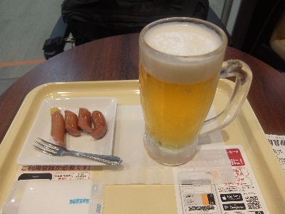 本日のお仕事は鹿児島、沖縄。雨降る鹿児島でお仕事を終えてからの鹿児島空港発那覇行きの飛行機。遅い時間ですが、これから一仕事しなくてはなりません。喉も乾きましたので「ドトールコーヒーショップ」で小休止ですね。ビールとソーセージのセットをお願いしました。ちょっと寂しいソーセージですが、ビールが飲みたかったのでこれで満足。ビールが飲めるドトールは嬉しかったです。どうもごちそうさまでした!「ドトールコーヒーショップ 那覇空港店 (DOUTOR COFFEE SHOP)」沖縄県那覇市字鏡水150 那覇空港 際内連結ターミナル 4F7:00~20:30ドトールコーヒーショップ 那覇空港店 (カフェ / 那覇空港駅) 夜総合点★★★☆☆ 3.0