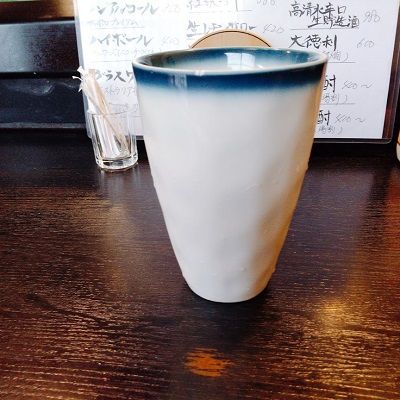 本日のウオーキングは新小岩方面へ。小休止で寄ろうと思っておりましたお寿司屋さんが満席。予約を入れれば良かったのですけどね。でもソロでの予約は小心者には難しいです。振られてトボトボと向かったのは「でかんしょ」さんです。チューハイをお願いします。200円という立ち飲み価格が嬉しいですね。チューハイの後はレモンハイ。キャッシュオンデリバリー。お財布の小銭整理飲みとなっておりますね。肴はチーズを海苔でお願いしました。ちょっとした仕事が嬉しいです。もつ焼きも丁寧なお仕事。安くて美味しいお店が近くにあるというのは幸せなことです。最後は芋焼酎をロックでいただきます。茶道の抹茶椀のような陶器でいただきます。ちょっとだけ気分が華やぎますね。美味しくお酒をいただくことができました。どうもごちそうさまでした!「でかんしょ」東京都葛飾区新小岩1-29-7[月~日]12:00~0:00でかんしょ (居酒屋 / 新小岩駅) 夜総合点★★★☆☆ 3.5