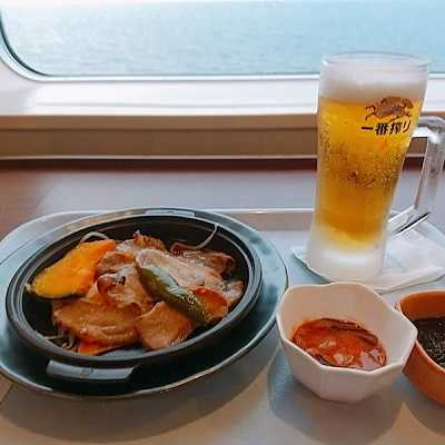 本日は小樽で映画を見た後にフェリーへ。新潟へ向けてのあざれあに乗船です。出港してすぐにディナータイム。「新日本海フェリーあざれあ白樺」さんで一杯やりましょう。カフェテリア形式となっておりまして、おつまみになりそうなものを探します。イカの塩辛、もずくあたりが呑兵衛好みですね。メインはホエー豚ジンギスカン。ドリンクはキリンの一番搾り、生ビールです。小樽を離れていまは海上。禁酒令の地上を離れてビールが呑める幸せです。ジンギスカンのたれのホエー豚はなかなかの美味しさ。海を見ながら美味しくいただきました。今回はテレビのある個室がとれませんでした。ディナータイムのあとはお風呂に入ってあとは寝るだけです。ウマ娘でもやりましょうか。無課金ですのでメジロマックイーン、ライスシャワー、サイレンススズカ、オグリキャップなどの有名馬のトレーナーにはなれません。ナイスネイチャに頑張ってもらいましょう。あれ、電波が。。。たっぷり寝て朝から一杯やります。洋風プレートセットにビールを添えて。キリンの一番搾り、瓶ビールです。ベジタブルファーストでサラダから。スクランブルエッグにベーコン、ウインナーソーセージ。モーニングで一杯という幸せな時間です。美味しく呑んで、たっぷり寝たところで新潟に到着です。どうもごちそうさまでした!「新日本海フェリーあざれあ白樺」北海道小樽市築港7-2勝納埠頭新日本海フェリー あざれあ 白樺 (屋形船・クルージング / 南小樽駅) 夜総合点★★★☆☆ 3.0