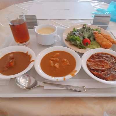 本日のモーニングは北海道静内の「ホテルアネックスイン」さんでいただきます。バイキング形式の朝食です。まずはサラダメイキング。キャベツメインにトマトを添えて、さらにマカロニサラダも一緒に盛りつけましょう。メインさらには焼魚を3種とスクランブルエッグ、そして厚揚げと野菜の煮物です。ご飯のお供として、海苔と生玉子、昆布やお漬物。温泉玉子とヨーグルトは小鉢です。ドリンクは牛乳とウーロン茶。種類は多くはありませんが、手作り感のあるメニューが並んでおりました。美味しい朝食をいただくと元気になりますね。今日は日高地方をレンタサイクルで走り回ります。どうもごちそうさまでした!「ホテルアネックスイン グランカフェ」北海道日高郡新ひだか町静内本町2-3-1ホテルアネックスイン グランカフェ (旅館・オーベルジュ(その他) / 静内駅) 昼総合点★★★☆☆ 3.0
