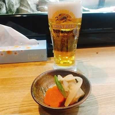 本日の早朝ウオーキングは豊洲市場方面へ。新橋からのバスは着席できました。まだまだ市場への買い出しが少ないのか、水曜日のためなのでそうか?「寿司大」さんを覗くとカウンターに空席あり。ソロですが無事入店成功です。前回はテーブル席空席ありもダメだったので、ほっと一息。超深夜ビールからいただきましょう。キリンの一番搾り、瓶ビールです。お通しは焼き魚。こちらをいただきながら、ビールをくぃっと。気分爽快です。オツマミはホタルイカをいただきました。ぷっくりとした美味しいホタルイカ。酢味噌でいただきます。幸せですね。お寿司をスタートしていただきます。最初は沖縄の本マグロのトロ。とろける旨さです。たくさんは食べることが出来なくなりましたが、あぶらって美味しいということを実感します。タイをはさんでサワラです。魚に春と書いてのサワラ。旬のお魚はやっぱり美味しいですよね。ショテマエに春は来なくても。次は煮アワビ。鮮魚が続くとお疲れというお年頃。柔らかく濃厚なアワビの旨味がたまりません。ビールの追加は必然的ですね。今日もしっかりとアブラの乗ったアジ。鹿児島のアジです。ネギのアクセントもちょべりぐですね。マルゼンスキーさんみたいな感想になってしますので年齢のせいです。北海道の北寄貝。苫小牧や長万部の時は地名で登場するのでもっと東のほうなのかな?でも、しっかりと美味しい春の貝です。マグロの赤身を漬けでいただきます。さっぱりと美味しいマグロ。これぞ豊洲市場ですね。太刀魚をちょっと炙っていただいております。温かいものが挟まるとほっとします。こちらも大好きなお魚です。巻物が登場です。本日はホッキのひも。ピュアで、お醤油でいただきます。玉子焼きが焼きあがりました。焼き立てを、ほふほふといただきます。お店で焼くって素晴らしいですね。ビールをあけてしまいましょう。お味噌汁をいただき、ほっと一息。これからはデザートタイムです。煮アナゴが登場です。甘くふわっといただきます。最後のお好きなものプレゼントは雲丹。追加料金500円ですが、このご時世ではお得なのかもしれません・濃厚で美味しい雲丹でした。追加は黒むつ。上品な甘さで〆とさせていただきました。もっといただきたいところですが、そろそろ行かなくてはいけない時間です。さくっと食べる市場のお寿司。幸せなモーニングでした。どうもごちそうさまでした。「寿司大(スシダイ)」東京都江東区豊洲6-5-1豊洲市場内6街区水産仲卸売場棟3F日曜、休市日休み寿司大 (寿司 / 市場前駅、有明テニスの森駅、新豊洲駅) 昼総合点★★★★☆ 4.5