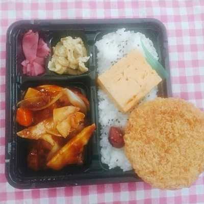 本日のランチタイムウオーキングは京成高砂方面へ。ランチ小休止はとれず、「伊勢屋」さんでお弁当です。金曜日ですからね。夜は呑みに行きますからね。仕事をしながらのランチとします。たくさんの種類のお弁当から選んだのが酢豚弁当。フライデースペシャルということでメンチカツも追加しましょう。豪華なスペシャル弁当の完成です。ベジタブルファーストでお漬物からいただきましょう。ビールが呑みたくなる塩梅です。小鉢スペースは日替わりのようですね。今日はお揚げさんです。本丸の酢豚は甘い味付け。玉子焼きも美味しいですね。レンジで温めたメンチカツもいただきます。ソースを付けて美味しくいただきました。どうもごちそうさまでした。「伊勢屋餅菓子店(イセヤ)」東京都葛飾区高砂8丁目26-14:00~15:00月曜日休み伊勢屋餅菓子店 (おにぎり / 京成高砂駅、柴又駅、新柴又駅) 昼総合点★★★☆☆ 3.5
