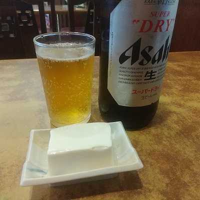 本日は土曜日ですが通院の日。モーニングをとれずに病院へ。検査、診察、会計、お薬と膨大な待ち時間。12時近くまで掛かり、もつ焼き250円ショップには間に合いません。健康で幸せな人間は、より幸せな時間を過ごします。そして不健康で不幸せな人間は、労働と通院の時間しかありません。はやく海に行きたいです。気が付くといつもの「松栄軒」さんのテーブル席です。瓶ビールをお願いします。アサヒのスーパードライです。すきっぱらにしみますね。ようやくショテマエにも土曜日がやってきました。瓶ビールから7分ほどででマイターン。さきに餃子が到着です。お昼からビールに餃子。ささやかな幸せがやってきましたよ。焼き立て、あつあつで美味しいですね。続いてメンチカツが到着です。「松栄軒」さんのメンチカツはデミグラスソースが掛かった、よそいき洋風のメンチカツです。ビールがすすむくんですね。ビールを追加でいただき、のんびりといただきましょう。お野菜もとりましたし、ヘルシーなランチです。糖質制限続行でライスは無し。病気とはずっと一緒に歩んでいきます。さて、少しウオーキングと致しましょう。どうもごちそうさまでした。「松栄軒」東京都葛飾区高砂5-37-7木曜日休み松栄軒 (中華料理 / 京成高砂駅、柴又駅) 昼総合点★★★★☆ 4.0