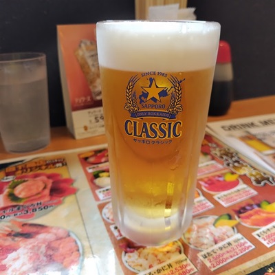 本日のウオーキングは函館方面へ。映画館で大休止としました。今年もクレヨンしんちゃんです。昨年は弱者男性の悲しい物語。今年は恐竜。モーニング娘。さんのラブマシーンが流れていましたが、お子さんたちではなく、親御さん向けでしたね。遅いランチはどこも大混雑。「道下商店」さんのカウンター席へ。生ビールをいただきましょう。サッポロクラシックです。美味しいですね。グループ、カップル、インバウンドで賑わう店内。大人気ですね。生ビールから15分ほどでマイターン。追加で日本酒です。大雪の蔵をいただきます。美味しいですね。生ビールから20分ほどでマイターン。雲丹イクラアワビ丼が到着です。こりっとしたアワビが良いアクセント。美味しくいただきます。日本酒ですので、塩辛が嬉しいですね。お酒をあけたあとは、あおさのお味噌汁で美味しくいただきました。さて、温泉へ帰りましょう。どうもごちそうさまでした。「朝市お食事処 山三 道下商店(【旧店名】函館朝市どんぶり横丁市場道乃家食堂 )」北海道函館市若松町9-15 函館朝市どんぶり横丁月・火・水・木・金・土・日・祝日・祝前日06:00 - 21:00L.O. 20:30朝市お食事処 山三 道下商店 (海鮮丼 / 函館駅、函館駅前駅、市役所前駅(函館)) 昼総合点★★★☆☆ 3.0