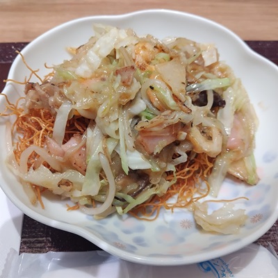 本日は長崎日帰り出張。午後からの大事なお仕事に備えて、早めの長崎入りです。ランチタイム小休止を長崎駅「ちゃんぽん 蘇州林」さんでいただきましょう。並ばないお店でセレクトしましたので、すぐにカウンター席へ。特上をすすめられましたが、一杯やるわけではない、急ぎのランチです。レギュラーの皿うどんを細麺でお願いしました。すぐにマイターンです。忙しいランチタイムに作っていただいた、美しいビジュアルの皿うどん。お野菜たっぷり。甘めの味付けです。普通に美味しくいただきました。さて、仕事場へと向かいましょう。どうもごちそうさまでした。「ちゃんぽん 蘇州林」長崎県長崎市尾上町1-67ちゃんぽん 蘇州林 (ちゃんぽん / 長崎駅、長崎駅前駅、八千代町駅) 昼総合点★★★☆☆ 3.0
