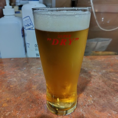 本日の宿泊は千歳です。フェリーで苫小牧東港についたのが夕方、それから南千歳までバス、そこからJRで千歳まで来ました。ホテルで小休止してからの居酒屋探しです。お盆期間でお休みも多いなか、「美空食堂」さんのカウンター席へ。瓶ビールをいただきます。アサヒのスーパードライです。美味しいですね。お座敷グループで大賑わいの店内。時間が掛かると最初にお声がけいただいたので、のんびりと呑みながら待ちます。瓶ビールのおかわりはすぐに出てきます。最初の瓶ビールから40分ほどでマイターン。豚串の到着です。豚バラと玉ねぎ。焼きたての串ものは美味しいですね。豚串から10分ほどで若鳥も到着。こちらもなかなかの美味しさです。瓶ビールは3本目に突入です。最後はさっぱりとキュウリ。美味しくいただきました。ホテルに戻ったところでメッセンジャーに気づきます。まりあさんからけいちゃんの急死を知ることになります。川の流れ。みんな海に行くのですね。北海道の一日目は悲しいお酒となりました。「美空食堂」北海道千歳市清水町2月・火・水・木17:00 - 00:00金・土17:00 - 02:00日定休日美空食堂 (食堂 / 千歳駅) 夜総合点★★★☆☆ 3.5