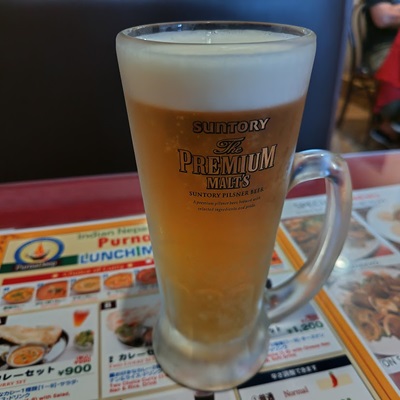 本日のウオーキングは京成高砂方面へ。ランチタイムの小休止を「プルナディープ」さんでいただきましょう。テーブル席にご案内いただき、休日のお約束であるランチビールをいただきます。サントリーのプレミアムモルツ生ビールです。美味しいですね。 すぐに出てきた野菜サラダ。ベジタブルファーストでありがたくいただきます。生ビールから6分ほどでマイターン。ドーサが到着です。焼きたてですね。熱いうちにいただきましょう。パリッともちっと焼かれたドーサ。具の無いクレープのようです。思えば何のイベントも無かった弱者男性の人生。具の無いクレープのようでしたね。ドーサから6分ほどでカレーのセットが到着です。やっぱり、具があったほうが美味しいですね。生ビールを追加して第二ラウンドといきましょう。ライスとドーサで美味しくいただきます。スパイスをいただき、元気回復の日曜日。さて、ウオーキングを続けましょう。どうもごちそうさまでした。「インド・ネパールレストラン プルナディープ(Indian Nepali Restaurant PURNADEEP)」東京都葛飾区高砂3-17-1火・水・木・金・土・日11:00 - 15:00L.O. 14:3017:00 - 22:30L.O. 22:00月定休日インド・ネパールレストラン プルナディープ (南アジア料理 / 京成高砂駅、柴又駅、新柴又駅) 昼総合点★★★★☆ 4.0