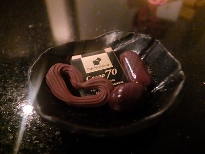 いつもはベジタブルファーストでお漬物ですが、疲れているのでチョコレートをいただきましょう。