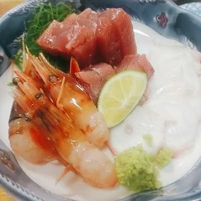 カツオとボタン海老とタコの3点盛りです。