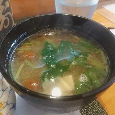 最後はナメコのお味噌汁でご飯部分をいただきます。