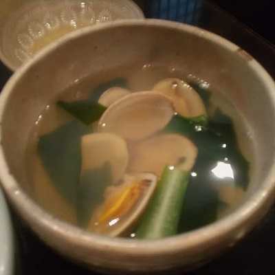 玉子かけご飯、ホンビノス貝のお吸い物。