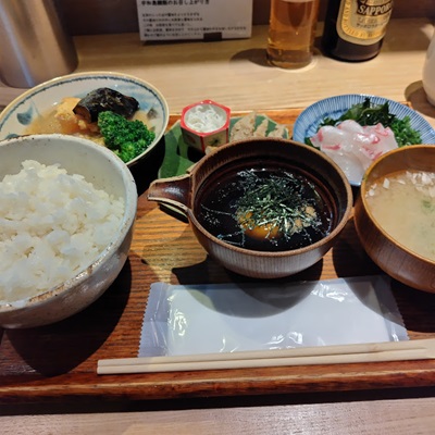 京成高砂「居酒屋 叶」でソーセージエッグ 2024.10.21