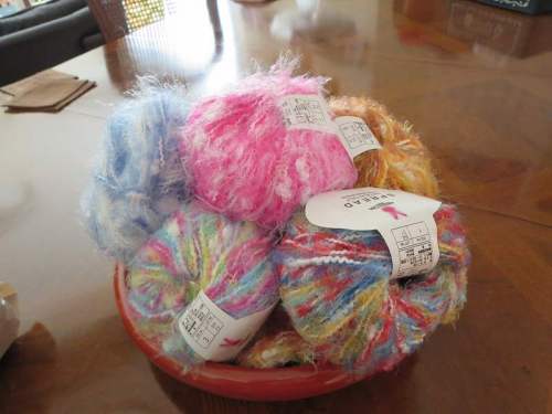 こんにちは~横浜のお天気は雲の多い晴れです今日は午後から雨になると予報では言ってましたが、今のところは大丈夫そうです明日は今年初めての着物の会、お天気にな~~れ昨年末スパーの中にある手芸洋品店で、毛糸のバーゲンが開催されていて眺めていたら店員さんに「籠一杯1,000円ですよ、如何ですか」と声をかけられ、編む当ても無く買った毛糸がこれ18個入りましたが、おまけで2個頂き20個をゲット、何と一個あたり50円で買いましたしかもイタリア製の何とも可愛い糸ですこの糸で編みました姫孫のマフラーです色合いと言うか風合いが可愛いでしょう・・・そして今編んでいるのはこれピンクの帽子です・・・ 喜んでくれるかな!