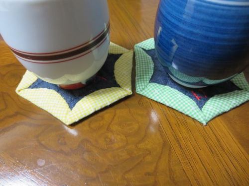 こんにちは~今日も 暑い 一日に為りそうですね~台風が二個も近づいて来てるとか・・・どうかそれてくれますように・・・さて、夏休みも中盤に入って来ましたが、孫たちはそれぞれに忙しいようです一番大きな中学生の王子孫は、剣道部の部活で忙しそう・・・まじめに練習に参加しているようですその孫、先日は友人と一緒にラーメンを食べに行ったとか・・・つい先日までは考えられなかったけど、さすが中学生、やるね!まあ~ 両親の許可は取っての事だけど、婆としては成長したな~ と次に大きな6年生の孫娘は、婿殿の両親と北海道旅行中・・・どんな経験をしてくるのやら、楽しみですね~その孫から先日貰ったプレゼントはおそろいのコースターです上手とは言えないけどチクチクと一生懸命縫ってくれたんだと思うと嬉しいですね~中央に刺繍糸で名前が縫ってありますよなでしこジャパンを目指している次の孫娘は、サッカーに明け暮れているようです毎週土曜日は練習試合だとか・・・ 大変だ!小さい孫達二人も観察だ、サッカーだプールだと忙しそう!爺婆の出番は段々と少なくなって来ましたね長男家族は今週末から台湾の高雄へ旅行の予定なのに・・・高雄では大規模なガス爆発事故が・・・大丈夫かな~