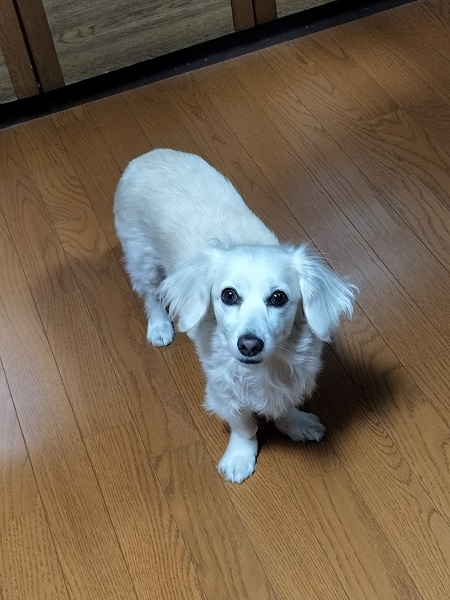 今日はお天気だった割には寒かったですね風が強かったので体感温度が低かったからかな朝、さあ~お散歩行こうかと声を掛けると真剣な表情で聞き、そのあと例のダンスです最近夜中にトイレを使わないで我慢してる様ですここ二三日トイレが汚れていません早く散歩に行きたいんでしょうね先日アップした白梅、一輪だけ咲いていましたよ一輪って言うのも良いもんですね近くで山茶花の白も清楚で綺麗ですね30~40分位の散歩を済ませて家に帰るとチャロの朝ごはんタイムゆっくり食べなさいと言っても聞きません一気に食べてしまいますドッグフードのご飯が大好きですよ年末に掃除機を二台買い換えました一台は縦型の掃除機、もう一台はロボット掃除機このロボット掃除機がうるさい位にしゃべります充電器から持ち上げると、持ち上げられました・・・と掃除開始のスイッチを入れると、掃除を開始します・・・と充電が残り少なくなると、充電器に帰ります・・・帰ったら、充電を開始しますそれも大きな声で・・・取説を読めば声を小さく出来るのかも知れないけど面倒なのでそのままに・・・充電場所の横を通る時に足がチョット触るとまたしゃべる・・・私はウルサイと言いながら通過していく冷蔵庫も炊飯器も色々しゃべりますよねそうそう、車も良くしゃべりますね海外の方が日本の家電をお土産に買われるようだけど異国で日本語でしゃべってるのかしらね