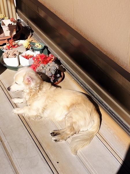 今日も良いお天気で日中は暖かでした雪国の方には申し訳ない位のお天気でしたねチャロも日向ぼっこが大好きですよバルコニーで日向ぼっこするのは良いんですが道路を犬の散歩で通る方が居ると凄い勢いでギャンギャン吠えるので困ってしまい早々に家の中へ・・・・今日の散歩道で見かけたお花ですが何と言う名前だろう・・・小さな花がびっしりと付いています二月も半ばを過ぎたので玄関に小さなお雛様を出してみました岐阜の焼き物の里で買った物です昔は七段飾りを飾ったものですが、今ではこれ位が丁度良い片付けも簡単だしね娘の所や息子の所はお雛様を出したかしらね明日聞いてみよう