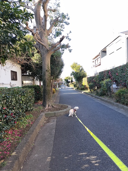 たまに自転車が通るだけ、静かで安全な散歩道です