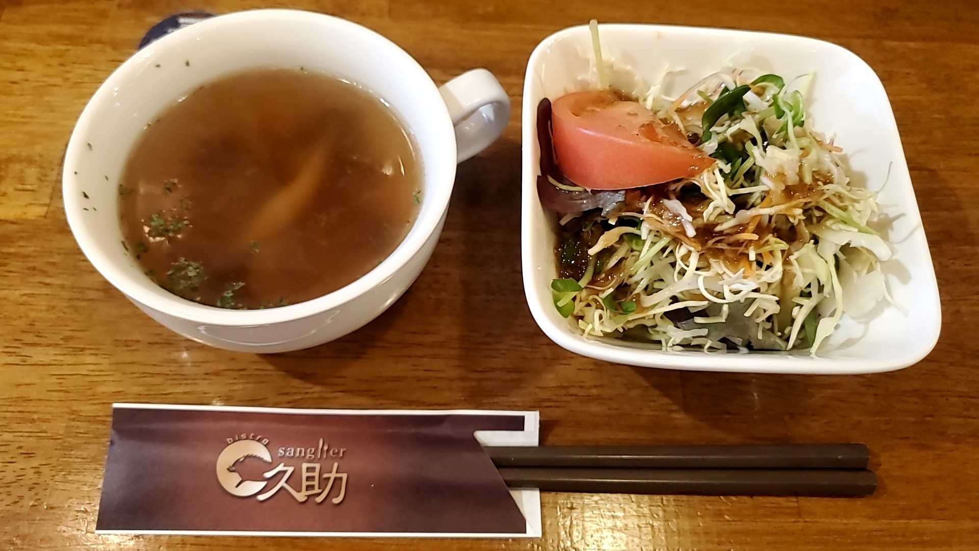 まず、キノコスープ、そしてサラダ。