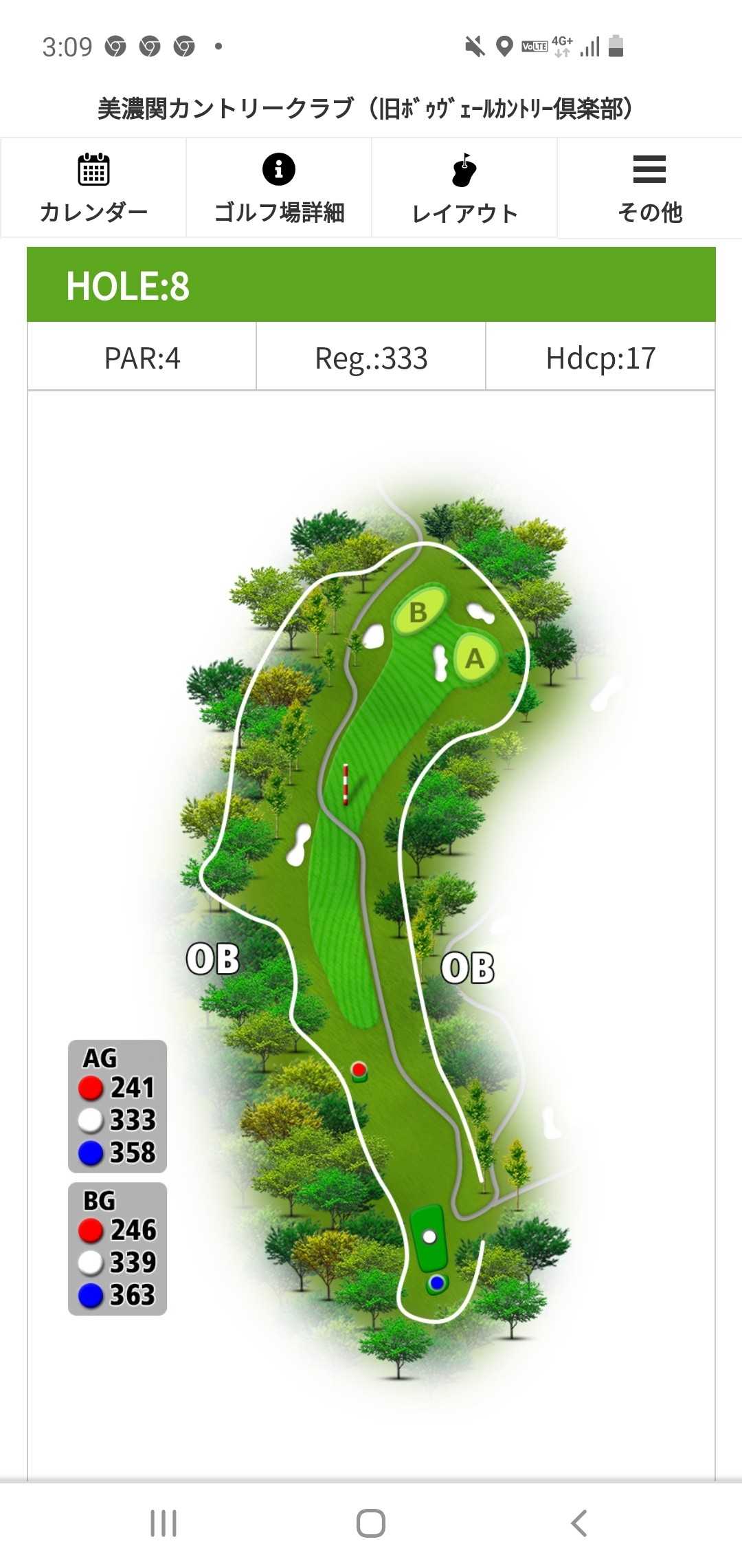 (⬇️のAグリーン。ピンポジは、グリーン左のバンカー寄り)