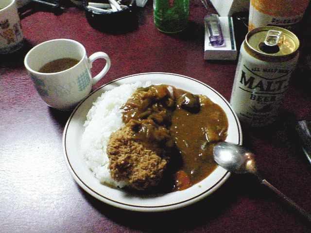 わしが昨日ブイヨンスープで2時間煮込んでおいた牛肉を朝迄放置してあったんで、これを嫁さんが作ったカレーに入れました(^o^);