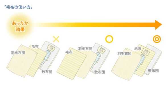 全日本毛布協会(そんなものはない)だか、日本毛布工業組合(これはあります)の説明によると、毛布の正しい使い方が解説されている。更に布団屋とか寝具メーカーも解説している。