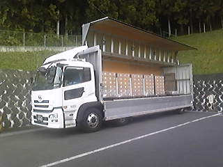 いつもは、夜に積み込み翌朝着、というパターンでしたが、今回は一昨日夜に積み込み、今日朝着ということです。
