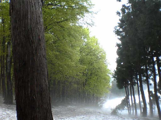 木々の中に入ってみると霧があり幻想的な景色でした( ´ー`)