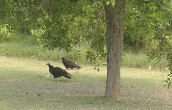 えっと~、昨日のほのぼのGTMO日記の、貴重な写真2枚でしたが、気に入ってもらえました?というか、全然、ほのぼのじゃないぃぃぃ~!!! ゴルァヽ(`д´ ヽ)と一喝浴びてしまいましたが、苦情は言い出しっぺのJ君まで♪(私の得意技:責任転嫁!)しかし、これに懲りず、今日もGTMOの素晴らしい生態系をご紹介していきたいと思います。えっ?? もういい加減にしろって???さて、今回お届けするのは、鳥といっても、以前、クレージーな程までに書き続けてた、小さな鳥ではありません!!今回の主役はTurkey Vultureという、大型の鳥なんだけど、どれくらい大きいかというと↓↓↓↓↓といっても、比較するモノがないから、分かりづらいですねパッと見たところ、何じゃコレ?? ルースターじゃないの?なんて言われそうですが、それとはまた違うんですよ↑こんな感じでバックヤードに現れるんですけど、ここに現れる頻度は極めて少ないんですね。彼らが大群で現れるのは、ある理由があるからなんです。そして、普段、外を歩きながらでも、↓こんな感じで外灯の上に止まって、どこかを見渡している様子写真を撮った時は2羽しかいなかったけど、今日、している時は、このTurkey Vultureの大群約20羽ほどが大空を旋回していたんですね。Turkey Vultureが大群で旋回している場面を見て、私が次に起こす行動というと。。。。。。。その周辺の臭いを嗅ぐ! どうしてかっていうと、彼らはあるモノを狙って、同じ場所を旋回し続けているんですよ。そのあるモノとは.....ココにいっぱい出てきてるモノ! もちろん生きたままでは、逃げ回るでしょうから、彼らが食すのは死んだ状態のバナナラッツたま~に、車道に飛び出てきてに引かれてしまったりしてるんですそしてそれをご馳走のごとく皆が狙うワケなんですよ!!!なので、私がTurkey Vultureの大群が旋回しているのを見たら、周辺の臭いを嗅ぐというのは、動物の死体のような臭いがするかどうかを確認するってコトなんです。そして、高い確率で、バナナラッツの死体が道路脇に転がってるんですよしかし、このTurkey Vulture、頭がいいのか悪いのか分からないけど、が通っても、動じないのに、人様が通ると逃げる!!そして、近くの外灯や木の上に止まって、獲物をず~っと凝視してるワケなんですよ。私なんて、自分が喰われちゃうんじゃなかろうか???なんて心配しながら走ってるんですけど、幸いにも、私のお肉は彼らにとってご馳走に見えないようで、一安心何だかね、鳥の大群を見上げて、すぐさま周辺の臭いを嗅ぐなんて、ここに住み始めてからやり始めた事であって、知らない間に私自身も野生化してきてる???と思ってしまうんですよね最後に、こんな怖そうなTurkey Vultureでも、ちょっとお茶目な部分があったりするんですよ!!!それでは、Turkey Vultureによる、一発芸!「タクシー乗りたいんだけどぉぉぉ~」 以下、「」部分はお好きなフレーズを入れて楽しんで下さいどう?? 昨日の日記よりは全然ソフトでしたでしょ??