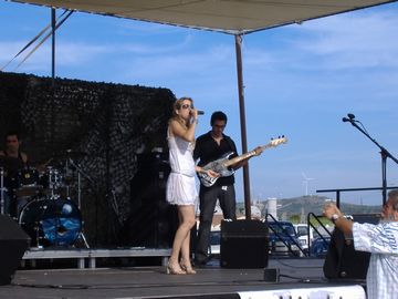 先週から懲りずにJazz Festivalの模様をお届けしておりますが、ここ1週間、Jazz Festival→ジャズの「ジャ」の字も触れなかったような.....敢えて触れたといえば.....怪しいレゲエバイオリニストくらいでしょうか。( ̄ー ̄;)ゞでも、本当はもっと本物っぽいミュージシャンが来てたんですよ。って、前出の彼に失礼ですね↑の動画でも紹介している女性ですが、Janitaという方で、soulful musicianと紹介されてましたが、結局のトコロ、Jazz Festivalなだけに、ジャズシンガーだと思います。ステージで気持ちよさそうに歌う彼女ですが、生まれがフィンランドと言う事で、寒そうなイメージがするんだけど、ここにやって来てやけどなんてしてないとイイですけど.....それにしても、やっぱり群がりますね~。男性諸君! いやぁ~、それにしても、久しぶりに肌の白い人見た!!って感じでした。今はNYに引っ越して、そこを活動拠点にしているんだとか。となると、ここの暑さはそれほどまで堪えないのかもしれないですね演奏後には、このベースのCO(司令官)より、星条旗(実際このベース掲げられていたヤツ)を三角に折ったものが収められた素敵な木箱を受け取っていました。ちょっぴり羨ましい私。だって、コレって、そうそう頂けるものでもないんですよね!! って、私はどうあがいたところで、もらう事はないと思いますが.....(戦死の勲章としては欲しくありません)そして彼女たちの出番が終わると、恒例の、CD販売とオートグラフ(写真にサインをしてもらえる!)の配布をしてましたが、今回は特に興味もなく、遠目で見てました。ちなみに彼女をもっと知りたい~という方は↓Janitaのオフィシャルサイト そして、次に登場したのがサックス奏者。Marcus Mitchellという男性で、これまた気持ちよさそうに演奏してました。彼のページ↓Marcus H Mitchell で彼ののサックスが流れてましたが、なかなかヨカッタですよこれなら、もう少し会場に残って、海辺で夕日を眺めながらJ君と聞いていたかったな~と思うような音楽でしたとはいいつつ、日が沈むまで待てないJ君の帰ろうコールでへ帰る事にしました。おっ、何だか今日の日記はJazz Festivalのリポートっぽくなった???サービスショット!!最近顔が丸くなり始めた私と、アゴの進化が止まらないJ君↓ってか、「海も一緒に入るといいね~」ってシャッター押したのに.....背景が全然分からん!!!