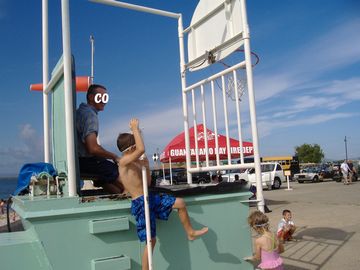 さてと、6日と7日の2日に渡ってお送りしたCOドボン大作戦!(←また名前変わった??)、いかがだったでしょうか??その壱→☆動画☆ ●●を撃沈させろぉぉぉ !?(1/4)~Jazz Festivalその弐→☆動画☆ 父娘で撃沈攻撃!!!(2/4)~Jazz Festival その参→ ☆動画☆ 今度はJ君のボスが撃沈攻撃(3/4)~ Jazz Festival その四→☆動画☆ 最後のオチと水に濡れる男の正体(4/4)~ Jazz Festival ◆画像◆しかし↑が大目玉企画というわけでもなく(だって、Jazz Festivalですもん)、これ以外にも企画ものはあったんです。なぜ、このJazz Festivalにだったのか分かりませんが、Car Showなるものもあって、・Sedan・Muscle Car・4x4・Truck・SUV・Military・Motorcycle・GTMO Specialというカテゴリーで車自慢の皆さんが車を会場に持ってきて、どこからかちょっと名の知れた人がやって来て審査し、表彰するというもの。表彰される種類は↓・Best Of Show・Best Motor・Best Detail・Best Paint車のカテゴリーと言われたって、車の種類に詳しくもない私。↑のカテゴリーの中で分かると言えばGTMO Specialくらいですとはいっても、これはここで生活した人でなければ分からないような車なんですけど、以前ベース新聞で特集が組まれてたほど(他にもっと大事な事ないのか~???)簡単に言えば、この地にやってきて、乗りに乗り回され、引っ越しの際、また新たな持ち主へと引き渡され、そこでそのご主人用にまた改造され....を延々と繰り返されている車なんですけど、たまに、今にも爆発しそうな車も走ってるので怖いんですよねでも、今回、以前からずっとに撮りたかったを発見それが 通称Marine One正面から見ると、火を噴いてますが、こっちの角度からの方が、何故"Marine One"と呼ばれるかが分かるかも知れませんねそう、これはどうやら、代々(?)ここへ越してくるマリンコーの人に引き渡されて、改造&ペイントをされて、今日に至っているようなんです。だって、先月、この"Marine One"の新しいオーナーが"Marine One"を引き継ぐ事の責任感とか何とかいうタイトルで、ベース新聞のインタビュー受けてましたからねこの車、もともとこういう形ではなく、普通に屋根のついた車だったのですが、人の手によって切り落とされて、改造に改造を重ね今の形になったそうです。私は今まで気づかなかったんですけど、後ろの方には↓↓こんな素敵なペイントまで施されているんですよ!! ひょっとしてこれは今回のイベントのためにペイントされてものなのかも知れません。マジックで描いた??? と言いたくなるような雑な仕上がりですけど、車への愛情は充分伝わってきますその他には、エンジンルームを公開してる車もあったりしたので、きっとこれは私の分からないカテゴリーの方でエントリーした車だと思います。でも、こういう車はどれも高級そうな車で、ここで走らせるにはもったいない!!というような車ばかり。この地にはゴルフカートで十分だと思うんですよね。信号もなければ、ハイウェイもあるわけじゃなし.....スピードを出そうもんなら、ひっきりなしに巡回してるお巡りさんにあっという間に見つかってしまいますしね!車の写真はあまり撮らなかったんだけど、こういうのがきっと"Military"部門にエントリーされている車なんでしょうね。↓あと、これはどの部門にエントリーされてか分からないんだけど、とっても実用的!↓↓↓だって、車から降りずして、魚釣りが楽しめちゃうここで生活して1年8ヶ月。そして、私たちのここでの生活も残すトコ1年と6ヶ月。いつの間にか残された時間の方が少なくなってきました。1年8ヶ月、車なしで大丈夫だったんだから、妊娠でもしない限り残り1年半も車なし生活を送る事になるでしょうね。私たちも、日本から車を持ってくる事が出来てたら(引っ越し手続きの際、車は持っていけませ~んって言われたのに、日本からここへPCSした人はちゃんと車持ってきてるんですよ!! しかも私たちと同じベースからのPCS!! この対応に私は未だなんですけどね)、何時の日か私の車もGTMO Specialの仲間入り出来てたかも知れないのに。なんてたって、ちょっと変わった色してたので。とは言っても、人に渡ったと同時に、お絵かきが始まってしまうんでしょうけどねその他にも愉快な"GTMO Special"があるんですよ。一気に紹介するとおもしろくないので、少しずつ紹介していきますね~。ちなみに、こんな感じです↓↓残りがどんなのか想像つくでしょ??