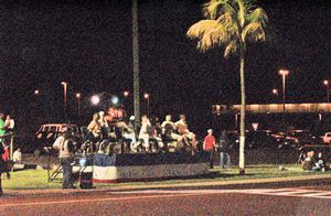 クリスマスはもうすぐソコに!!というのに、相変わらずク●暑い毎日が続いてるここキューバですが、それでもやっぱりホリデーはやってくる先週の土曜日に、クリスマスパレードが行われたので、J君と一緒に見てきました。実は去年は、買い物の帰りに偶然見て、感動したんだけど、を持ってなかったので、撮り損ねてしまったんですよねでも、今年は日程も時間も分かってたので、もしっかりと充電をして、ぺー体勢(ちなみに林家さんのコト)は完璧です今年は、去年見られなかったものが登場!!なんと、CO(ベースの責任者とでも言うんでしょうか)その他重役の為の観覧席が設けられてたんですよ。といっても、 かなり、ちゃっちいですがね( ̄∇ ̄;) ハッハッハッそしてパレードはチビッコ集団が先頭だったんだけど、何組かの集団はチアリーディングもどきのパフォーマンスを披露してて、でも一箇所に立ち止まってあまり時間を取りすぎると、後ろが詰まってしまうので、1分程度の演技に押さえればいいものを、ある少女集団なんて、の"Hollaback Girl"をまるまる一曲分こんな風に元気よく踊っちゃったため、後ろに続いてる集団が便秘状態! その後は順調にパレードは進んでいき、ガールスカウト&ボーイスカウト集団やテコンドークラスのチビッコ達。あと、ゴルフカートをデコレーションして走り回る人やどこかのプリンス気取り?? でも真ん中の子が可愛いから許す他にはコントラクターさんのグループそして、途中、ちょっと怖そうなグループがと思ってたら、SANTA SECURITYとロゴの入ったお揃いのTシャツを着たMarine Corpsの皆様でした ちょっとカッコ良さげなおにいさんだったのに、ブレちゃったよで、彼らのフロート代わりになってたのがひょっとしてその袋の中身は爆弾??と思ってもおかしくないような雰囲気でしたよしかも、この有刺鉄線みたいなヤツも怖いよ・・・・・そして、↑はJ君が強制的に属させられている属している何とかいうクラブのフロートらしいんですけど、超ショボかった・・・・・というか、本気でデコレーションすたのかい??って言うくらいに何もなくてねJ君自体はこのパレードにもこのフロートのデコレーションにも参加せず、遠くでこのパレードの様子を見てたんだけど、私と同様に_| ̄|○ な感じで、首をブンブンと横に振っておりました。きっと、J君心の中では「パレードに参加する側じゃなくてよかった~」と強く思っていたに違いありませんその後は視覚直しとでもいうんでしょうか、キレイにデコレーションされたライブラリーの皆様のフロート。他にもラティーノ・ファミリーと称する(いや、称さなくてもラティーノの皆さんだったんですけど)陽気な皆さんが、Flis navidad~の音楽に合わせて踊りながらパレードしてました。残念ながらシャッターチャンスを逃してしまいましたそして、最後にファイヤートラック数台がユックリとしたスピードで進んでいくんですが・・・・・なんて言うか、デコレーションの必要がないくらい、悠然としてる姿に思わずとなってしまいました。で、コレを見送ってパレード終了となったワケなんだけど、感想としては、去年の方が数段ヨカッタです。去年はフィリピン人コミュニティーの皆さんのフロートがとってもキレイで、今年もそれを楽しみにしてたんだけど、見かけなかったし.....そうそう、写真では静かにパレードが進んでるように見えますが、トラックやらバイクやら、救急車やらパトカーやら、そして消防車やらのサイレンがやかましい~!!! と言うくらいに、煩かったんですよゲートの向こうのキューバに住んでる皆さんがビックリしてなければいいですけどさて、今週の土曜日は、地上から海上へ場所を移してボートパレードです。ちなみに去年のボートパレードはこんな感じ→海に浮かぶクリスマス! ◆画像◆ ↑ここに、丁寧にも↑で書いた"Felis Navidad"へのリンク先が載ってます去年は不満だらけでに帰ったようですが、今年はどうなるんだろ??? ってか、J君、既に行く気なしなんですよね・・・・・・゜・(PД`q。)・゜・