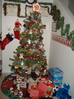 今さらクリスマスツリーの紹介だと~???ヽ(`д´ ヽ)と言われてしまいそうですが、この1週間Gary Sinise and The Lt.Dan Bandの事を引っぱり続けて書いてたので、クリスマスの話題に触れる事もなくクリスマス終了~(12/26書き込み中)ということで、一応、この日記の日付上は24日として、何とかクリスマスに間に合わせてしまえ!という魂胆 (^m^ )さて今年の我が家のクリスマスツリーですが、こんな感じになりました。ちなみに、去年はこんな感じ→クリスマス2005あまり変わらないですけどねちょっと変えてみたといえば、時計の上の方の空きスペースをこんな風にしてみたり、階段に沿った壁をよりヘンテコリンにしてみたり・・・・・私の背では届かないところはもちろんJ君がデコレーションしてくれたわけなんですが、去年同様、ディプロマ(卒業証書)も忘れずに装飾!そしてクリスマスストッキングは去年と同じものを使用。本当はもう一つ、左側のストッキングの色のパターンが逆になっているものがあるんだけど、J君の諸事情で外されてしまいましたそしてツリーを眺めるのが2人だけというのも淋しいので、家の中にあったぬいぐるみを総動員させて、ツリーの下に座らせました。ってか、エルモ何匹いるんだよっ???クッキーモンスターも含めて、目の所だけ見てると、チョット怖くなりますね茶色い熊の下に座ってるエルモ、ちょっと色が色焼けしてるように見えますが、本当に焼けてしまってるんです。実はこの色焼けエルモ、数年前の誕生日に地元の友達がプレゼントしてくれたもので、あまりに嬉しくて、自分のにいつも載せてたんですよね。晴れの日も雨の日も、真夏だろうが真冬だろうが。そして当時勤めてた会社は屋根付きの駐車場なんてものはなく、が燦々と降り注ぐ、日光浴にはもってこいの駐車場。そこで毎日この駐車場で私の勤務中の中に取り残されたエルモちゃんの毛が色あせてしまったものを思われます可哀相な事をしてしまいましたさてさて、今年は去年以上にこのブログを通してたくさんの友達が出来て、いろんなプレゼントを頂いたりもしました。本当にありがとうございます私が住所を教えて頂いた方には、簡単なクリスマスカードと私たちの写真を同封して送ったのですが、届きましたでしょうか??写真は私たちが↑のツリーの前で何故が立て膝をしている写真だったんだけど、実はデコレーションも中途半端だったんですよね上の方から変なものがブラ~っと下がっていると思います。あとね、もう一つあの写真の中には衝撃的なものも写ってたんですよ!!ちょうどこの写真を撮ったのがね、J君に降りかかった災難の翌日だったんですよね。とにかくクリスマスに間に合うようにカード送らなきゃと思ってたので、あんな形になってしまったんです。ま、今さらといっては何ですが、私たちがお送りしたクリスマスカードをお持ちの方、今一度J君の左手に注目してみて下さい。思わず、( ̄▽ ̄)ノ_彡☆バンバン!とテーブルを叩いてしまうかも??あと、もう一つ特別企画として私からだけではなく私たち夫婦からということで、J君巨匠の書く日本語でサインも入れてますので、そちらもお楽しみ下さいさて、次回はクリスマス当時のお話し。クリスマスプレゼントについて書こうと思います。という事で、例のドイツから取り寄せたプレゼントも登場してきます CINCINNATI FLYING PIG MARATHONまであと133日!