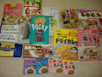 今週の初めにJapanSFOさんからのおやつの詰め合わせ♪届いて、非常に浮かれていた私ですが、その数日後に実は母上様からの荷物も届いたんですよ!!(Fちゃん、その節は本当にありがとう~)こう立て続けにパッケージが届くと、天にも昇る気持ちになりますねさて、毎度の事ながら、海を渡って、島を渡ってやってくるパッケージ。すさまじい運ばれ方をしたんだな~と包装されている段ボール箱に同情してしまうのですが、やはり今回も・・・・・・もの凄い虐待を受けた後、ここに運ばれたようですっていうか、USPSの方、テープでグルグルと再包装してくれてるの嬉しいんだけど、するならするで、徹底的に巻いて下さいよ~。゜゜(´□`。)°゜。!!さてさて、今回母上がこの箱の中に詰め込んでくれてたのは、こんな品々でした。 これは、私がリクエストしてたものばかりなんだけど、一つリクエストしてなかったものが入ってて、J君を喜ばせたんですよ何かというと、 なぜJ君がこれほどまでに、このジョージアコーヒー(しかも、オリジナルに限定!)をこよなく愛するのか分かりませんが、もうね目がキラキラしてましたよ実は郵便局でこのパッケージをJ君が受け取った時に、既に↑の破れかぶれの隙間から、この缶コーヒーがチラッと見えてたらしくて、でもJ君は「まさかね~┐(´ー)┌フッ」なんて思ってたらしいんだけど、それが本当にジョージアコーヒーだったもんだから、そりゃ大興奮ですよ、アナタ!!ま、この3缶はあっという間に飲み干してしまいましたけどねそして、私の本当のリクエストとは少し違ってたんだけど、もの凄く消費者の心を奪うような文句が書かれているこういったおつまみ。本当はこういうのを期待してたんだけど、でもこれでも嬉しかった~で、J君が「それは何だ?何だ?」と聞いてくるので、「お酒飲む時のおつまみだよ~。J君も食べてみる??」と誘ったものの、 コレ コレ この○印の中に書かれてるマークが目に入ったようで、NO THANK YOUと丁寧に断られましたよそして、J君は煎餅が食べたいと言ってたので、J君の大好きなも母上にリクエストしてたら、間違えることなく送ってくれてました。(本当はちょっぴりボケでもかましてくれるかと思ったんだけどね)で、その日のうちにJ君は数枚食べたんだけど、その数日後、同じものを食べようとしてるのに、ふと個装されている裏の方を見て、一口頬張った煎餅を口から取りだしたんですよ知っている方もいるかも知れませんが、この"ぽたぽた焼き"って、個装パッケージの裏側に「おばあちゃんの知恵袋」と題して、ちょっとした豆知識が書いてあるんですよね。で、たまたまJ君が手にしてたパッケージが ちょっぴり顔色の変わったJ君が、恐る恐る私に聞くわけですよ。ひょっとしてコレ、魚が入ってる???数日前は何ともなくバクバク食べてたのに、いきなりのイラストが描かれてるだけで食べるのやめるのかっ??もうね、私の心の中は→(≧∇≦)ノ彡 バンバン!な感じで大爆笑してたんだけど、J君にはちゃんと、それが魚入りではない事をちゃんと説明してあげましたまぁ、たくさんのお煎餅が入ってたのですがほとんどがボロボロに割れて、煎餅をパリッと囓るという楽しみは半減されたんだけど、久しぶりのお煎餅で嬉しかったな。実は↑に紹介した品々はあくまでもおまけであって、母上からの本命の品は別のものだったんです。最初、この続きを書いてたんだけど、アナタ、文字オーバーですと言われてしまったので、次回に持ち越す事にします