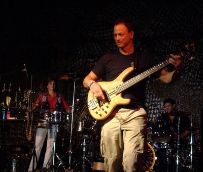 さて、お待たせしました。前回の日記、超大物ハリウッドスター登場予告 !! ☆動画☆でお知らせしたとおり、先週の日曜日に行ってきたハリウッドスターによる慰労訪問会というと、もの凄く古くさ~く聞こえてしまいますが、やって来られたんですよ!!!まぁこれは私にとって本当に偶然としか言いようのない出来事で、詳しくは→フォレスト・ガンプを見たその数日後の偶然!? ◆画像◆ で書いているんですが、この映画"Forrest Gump"の後半から出演して、圧倒的な存在力を見せつけてくれた殿方Gary Sinise(ゲイリー シニーズ)さんです最初、私の中での彼のイメージはというと......・目がデカイ→爬虫類っぽい・鼻とほお骨が赤くて丸くてテカテカしてる・悪役やらせたらピカイチ この3つに共通するのは彼かばいきんまんくらいだろうという、あまり良い印象ではなかったんですが、数週間前に"Forrest Gump"に出演している彼を見て、「おっ! なかなかいい男じゃないの??」(←この時はまだ彼がここに来るなんて知りませんでした)というまでに変わってたんですさて、そのGary Siniseさんですが、今回の訪問はGary Siniseというよりか、この映画で演じたLt.Dan(ダン中尉)率いるバンドメンバーとして来たようですこの日がやってくる前までは、J君はというと行く気全くなしだったんだけど、大学のクラスが終わり、何もする事ななくなったJ君。暇つぶし的な感じで私についてきてくれる事になりました。今まで何度も、直前で「やっぱり行かない」と言いだし、何度となく私の心をズタズタにしてきたJ君なので、今回も私一人で行く事になるんだろうな~と腹をくくっていたので、本当にミラクルでした。さて、ライブ会場となるのは、いつも映画が上映されている場所。もちろん屋外です。8時開始の予定で、20分ほど遅れての開始となったんだけど、会場には本当にたくさんお人たちがいて、中にはユニフォーム姿のまま駆けつけている人も。私たちはステージから結構離れた場所に座って、とを準備して待機。周りではマリンコーの皆さんが唸り始める中、突然ステージが真っ暗になり、数秒後、ステージに女性が現れ、いきなり国歌斉唱皆、驚くものの、一斉に起立してしばらくは静寂した状態になってました。J君はブツブツと言いながらも、国歌を聴いてましたね(←愛国心ゼロでミリタリー勤務の男です)そして国歌斉唱が終わり拍手と歓声が上がる中、あのお方が登場です!!!彼が何かを肩に抱えて、ソロを弾きながら登場。行くよ~!!!キャッヾ(≧∇≦*)〃ヾ(*≧∇≦)〃キャッ 彼を実際に見る前までは適当な事言ってたのに、見た瞬間......惚れましただって本物ですよ~!!!! 最初の1曲はJ君の側でを撮り続けてたんだけど、やっぱり同じ場所にいるからには近づきたい!!! 側で感じたい!!匂いが嗅ぎたい~(←変態!)と、そんな素振りをJ君に見せるわけにも行かず、「ちょっと一瞬だけ近くに行って撮ってきていい??」と聞いてから、近くに行って撮ってJ君の元に戻ったんだけど、やっぱりもう一回!という事で、そこから先はずっとステージ近くに居座る事に。曲が終わるごとに、彼がいろいろと言葉を発するわけですが、会場はもう大変!! 特に男性からの指示が多く、"Lt.Daaaaaaan"と愛を込めて叫んでました会場の皆さんも"Gary Sinise"と呼ぶより、"Lt.Dan"と呼んでいる人の方が圧倒的に多かったので、ここでも彼をLt.Danとして呼ぶ事にします。このバンド、"Gary Sinse and Lt.Dan Band"というそのままのバンド名ですが、彼の時間の許す限り、こういった感じで各地を回り続けているようで、今までにイギリス、ドイツ、オランダ、ディエゴ・ガルシア等々、世界中を飛び渡っているようですさて、そんな(どんな?)彼ですが、ベース担当で、もの凄~く渋い重低音が響き渡ってましたよ。何だか、大学時代に熱上げて応援してた地元バンドのベーシストを思い出しちゃってね。ベースって言うと、あまり聞き取りにくい音ではあるんだけど、それが聞こえるようになった時のあの至福感しかも、彼(Lt.Dan)に至ってはビッグネームにも関わらず、絶えず前に出ようとするのではなく、ベースっていうバンドの中では脇役的なポジションで演奏してるって言うのがまたなんともヨカッタですよ~。ベース=寡黙という私の持つイメージとダブって見えるので余計、かっこよさが増したようですこのバンドですが、ボーカルは男性一人(次回にでも紹介)と女性2人で構成されてて、↓こんな可愛らしい歌のお姉さんでした他には、ちょっとこぎれいな感じのキーボードのおにいさんがいたかと思ったら、普通のオジサン??のようなギタリストもいました。そしてさらに会場は盛り上がっていきますだってね、↑に紹介した写真って、これでもまだ遠くから撮ってる写真なんですのよ。という事で、次回はもっと接近したものや、忘れてはならないもう一人のビッグゲストも登場させてみたいと思います。お見逃しなく! CINCINNATI FLYING PIG MARATHONまであと139日!