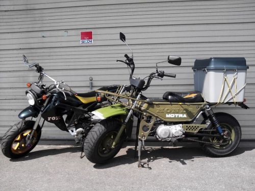 ストマジ、売却しました。せっかくなのでモトラと記念撮影。モトラ、でかいね。もう少し、モトラの尻を上げないとな。サスが短くてフロントういとる。新天地でがんばってね、ストマジ君。