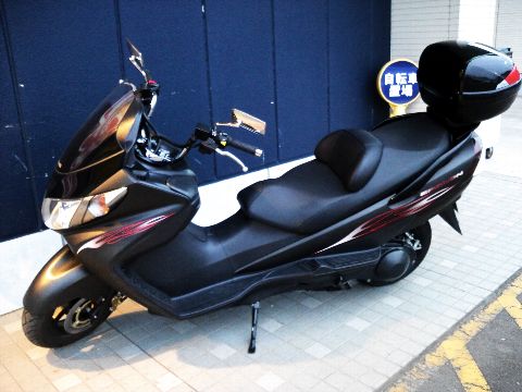 新しく増車してますwwwスカイウェイブ タイプS(CJ44A)後期。バンディット250を放置しすぎで要メンテ。しかもキャブ分解とか、結構大がかり。部品は発注してあるけど、高速に乗れる足が欲しくなってきた。バンがあるので毛色の違う物が欲しいな、と思う。そんな中、候補はRGVγとスカイウェイブ。γは値段高ぇんだよ。しかも俺はVJ22最後期のラッキーストライクカラー以外(´・д・`)ヤダwwwまぁ、贅沢なので適当なスカイウェイブで我慢しよう。と、言う事で現行スカイウェイブのちょい前モデルを購入しました。車体番号とカウルカラーとECUの癖が一致しないけど、まぁ、この際いいや。買ってからエアクリ・プラグ交換タイヤ交換ヘッドライトバルブ(ハロゲン)・テールバルブ(LED)交換純正サイドバイザー追加しますた。サイドバイザー追加すると幅に迫力。綺麗に見えるけど、近くで見ると結構傷あるよ。6月半ばまで乗りながら順次メンテナンス。7月から本格運用予定。