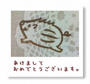 年末年始のご挨拶が遅くなりましたが、昨年はたくさんの方々にこのブログに遊びにきていただくことができて、とっても充実し、楽しい1年になりました♪今年もマイペースでゆっくり更新になりそうですが、昨年同様、今年もよろしくお願いいたしますね!久々のはんこは、イノシシくんでした。このはんこをペッタンした年賀状を住所のわかる方々に勝手に送りつける(ヾ(--;)ぉぃぉぃ)予定です。「えっ?まだ送ってないの??」なんて言わないでね~★いま必死で作成中です。。。ヾ(;´▽`A``って、たいした年賀状でもないので、みなさん届いた方は遠慮せずに受け取ってね!お返事とか気を使わないでいいですからね~♪(*´▽`*)ノ゛ではでは、もちょっと待っててね~(*^▽^*)ゞ